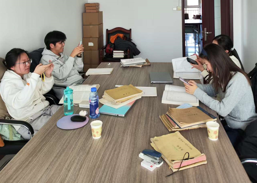 本次田野調(diào)查分為訪談與查閱文獻兩大環(huán)節(jié)。14日上午,在劉文峰主任陪同下,歷史學(xué)院一行走進樂陵市鐵營鎮(zhèn)大王莊,拜訪了81歲的原村會計王德平老人。師生們圍繞上世紀60年代至90年代村賬本反映的鄉(xiāng)村經(jīng)濟問題開展訪談,王德平老人對著賬本耐心解釋當時的情況,還講述了自己的人生經(jīng)歷,讓學(xué)生們了解到了集體化時期與改革開放前后鄉(xiāng)村生活的圖景。14日下午,師生們在劉文峰主任引導(dǎo)下查閱了大王莊的舊賬本,包括糧食物資賬、往來賬、現(xiàn)金賬、工分登記簿、生產(chǎn)收支分配賬等多種類型;師生們還結(jié)合《鐵營鎮(zhèn)鎮(zhèn)志》《宋氏族譜》等文獻及口述資料對賬本內(nèi)容進行了交叉驗證。此外,學(xué)生們還動手協(xié)助當?shù)赝瓿闪私?0冊賬本、1部鎮(zhèn)志與1套族譜的電子化掃描歸檔工作,讓這些易受潮、易破損的紙質(zhì)資料轉(zhuǎn)化為可長期保存、方便查詢的數(shù)字資源,為這些珍貴民間文獻的長期保存與學(xué)術(shù)研究奠定了基礎(chǔ)。