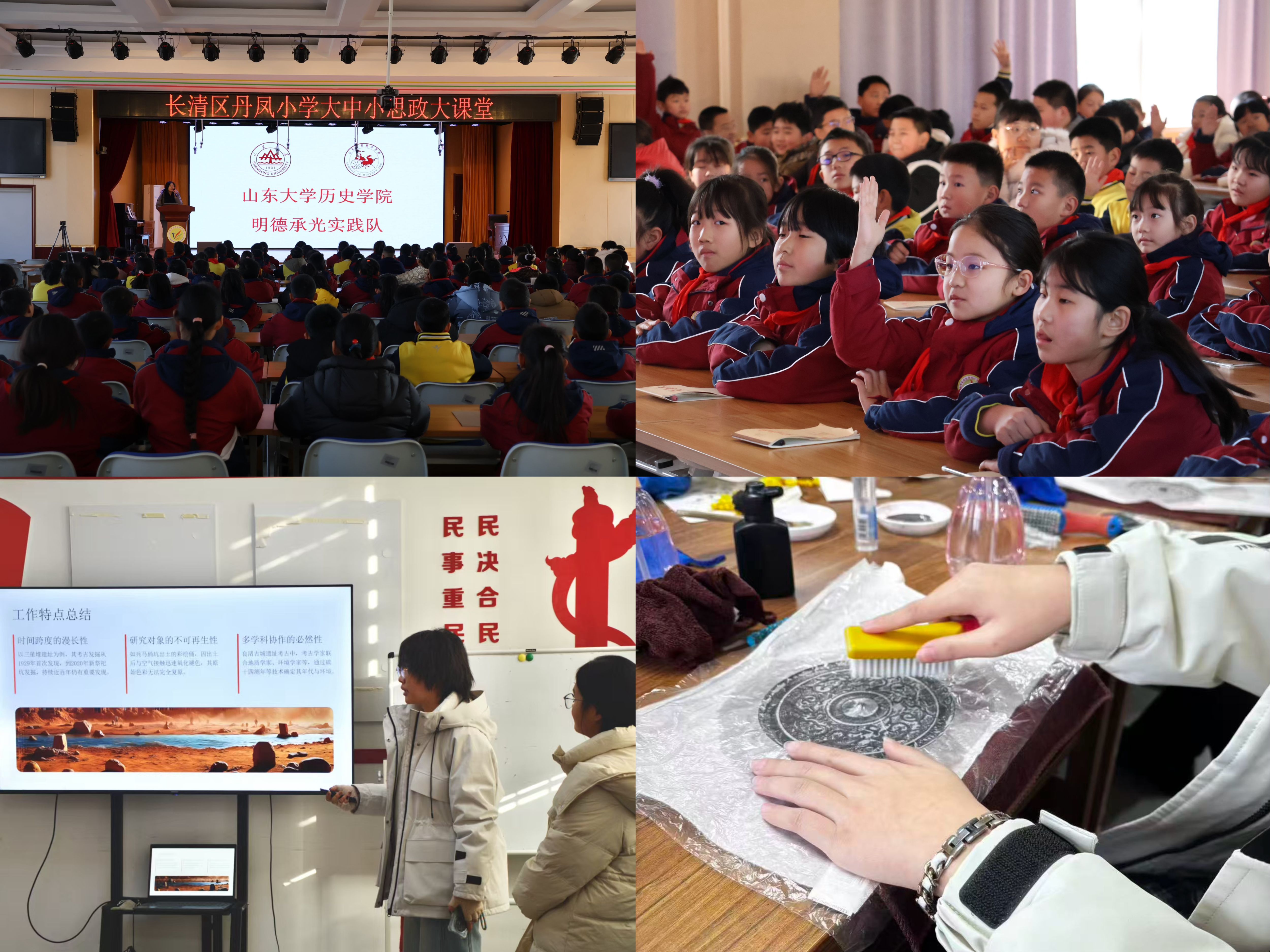 “明德承光”實踐隊面向200余名社區(qū)青少年,通過主題宣講、互動交流、發(fā)起倡議等環(huán)節(jié),引導(dǎo)學(xué)生傳承優(yōu)良家風(fēng),厚植美好品德。“太行礦聲”紅色宣講團(tuán)以井陘礦區(qū)紅色資源為切入點,完成深度訪談并收集萬余字口述史料,深入社區(qū)講好有溫度、有深度的紅色故事。“‘考’識真情,‘古’說今破”團(tuán)隊聚焦于破除公眾對考古學(xué)的普遍誤解,面向社區(qū)居民生動闡釋考古學(xué)的科學(xué)性和文化傳承保護(hù)的重要性。“星火相傳”隊組織居民走訪博物館,舉辦拓印工作坊,在知識講解與動手實踐中弘揚中華優(yōu)秀傳統(tǒng)文化。